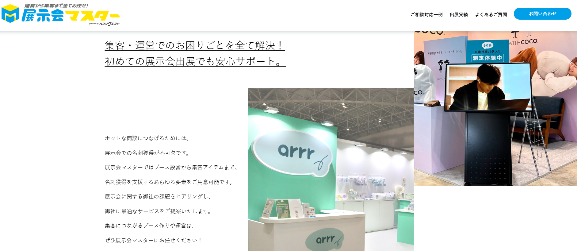 もし、展示会の準備や運営に不安がある場合は、展示会マスターにご相談ください。