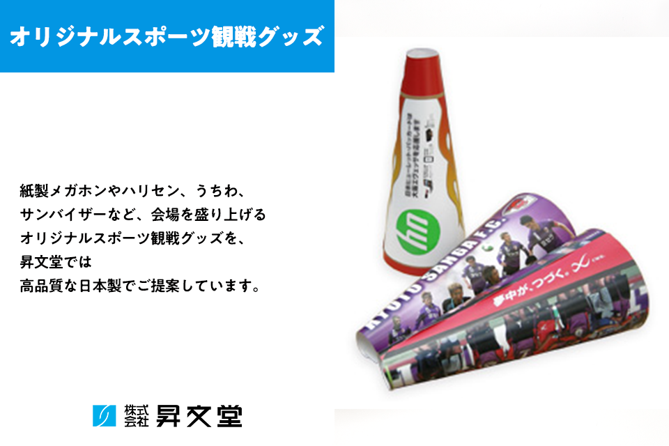 企業や店舗の販促、イベント配布、記念品、観戦応援などに向けたオリジナル紙製グッズの製作にも対応しています。紙製メガホン、ハリセン、簡易うちわ、サンバイザー、ジグソーパズルなど、アイデアを形にする商品展開で、プロモーションやイベントの場を盛り上げます。