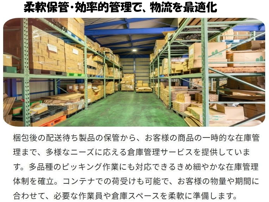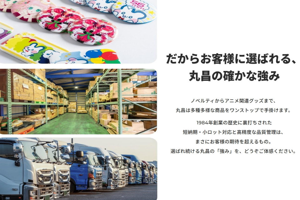 丸昌は1984年の創業以来、商品のセットアップ、検品、梱包、配送、倉庫管理まで、お客様のご要望に対し、 柔軟に対応する対応力が強みです。長年の信頼で築き上げたネットワークで最適なソリューションを実現します。