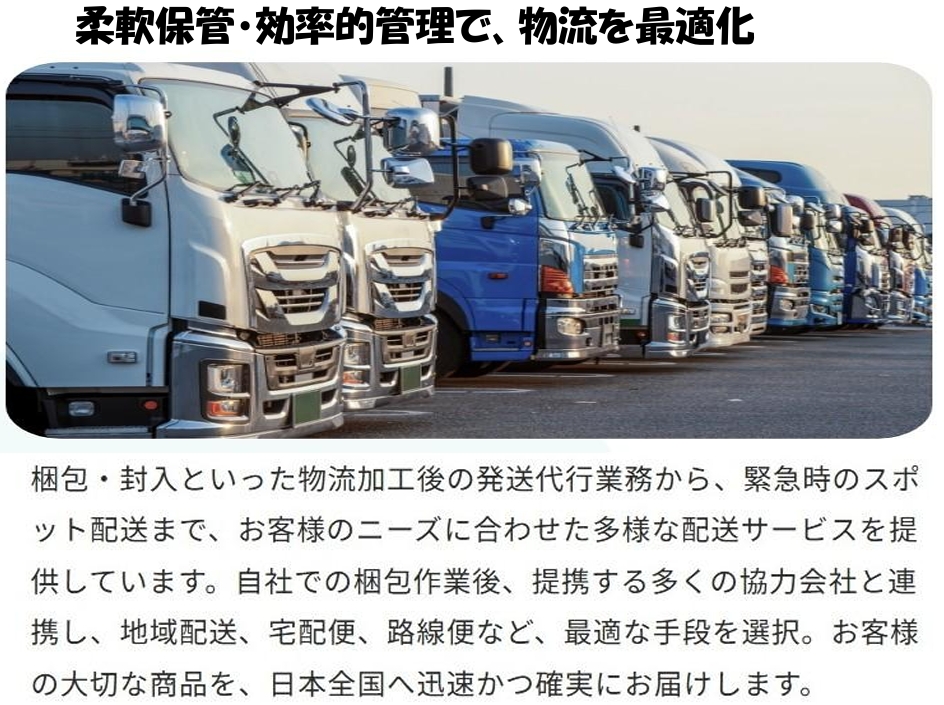| 事業内容 | ●物流加工全般(セットアップ・検品作業・検針・梱包)●POP・ノベルティー商品のアッセンブリー ●印刷、広告関連製品のセット作業●内職加工全般●ピッキング・仕分け作業 ●缶バッジ製作・製缶●発送代行業務●保管・在庫管理業務 |