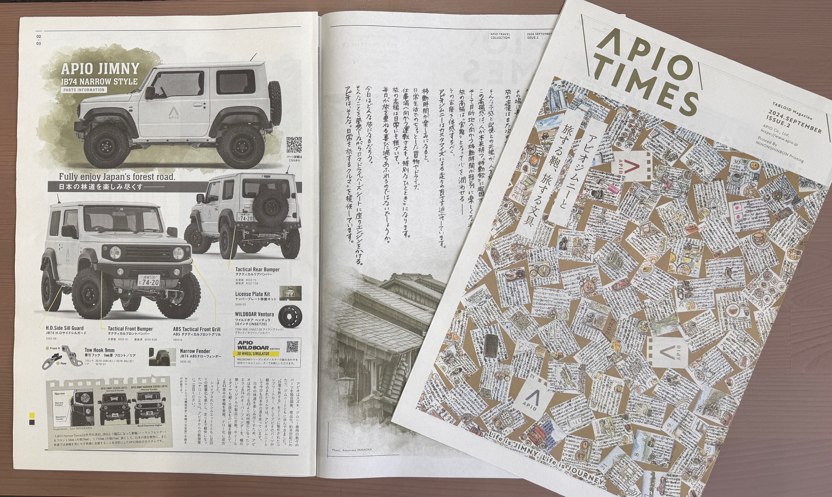 <おしゃれなパーツをおしゃれに伝える>自動車のおしゃれなカスタムパーツを取り扱うAPIO様がアウトドアの展示会用に、会社のPRとパーツ等のカタログ、そして社長の愛する趣味までを載せた新聞をタブロイド判で印刷してくださりました。展示会で実際に新聞を読んでくれたお客様からすぐに問い合わせを受けたとのことでした。